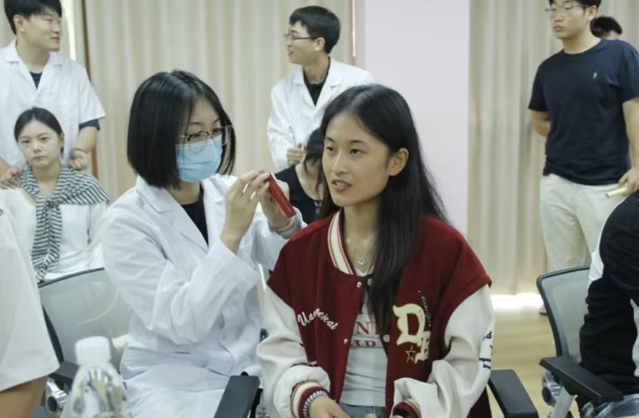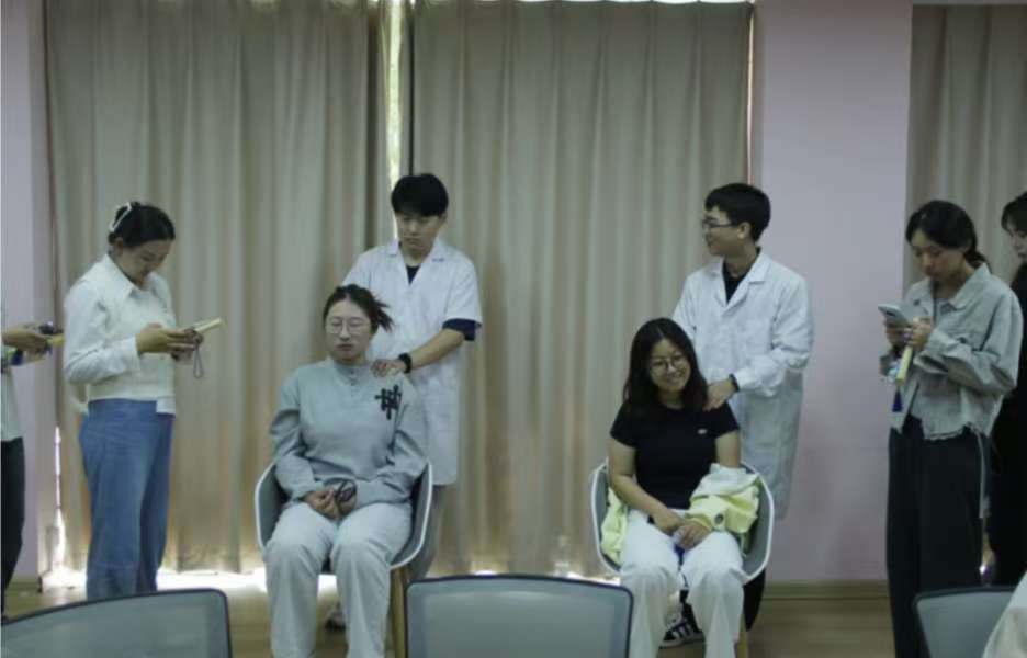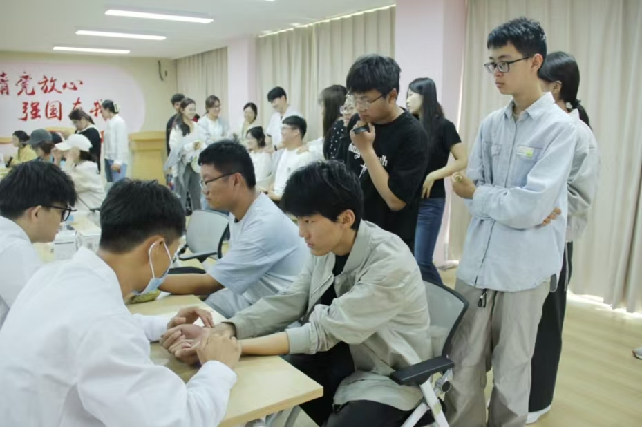 调研结束后,我校博硕实践团将专业知识转化为实际行动,开展中医义诊与文化推广活动。活动中,实践团成员运用脉诊、推拿、耳穴压豆等中医诊疗技术,为同学们提供健康服务并答疑解惑;同时设置中草药香囊、艾条制作等互动区域,以趣味方式传播中医养生理念。现场氛围热烈,同学们踊跃参与,两校学生在互动交流中深化了对中医文化的认识,也进一步促进了校际友谊。
