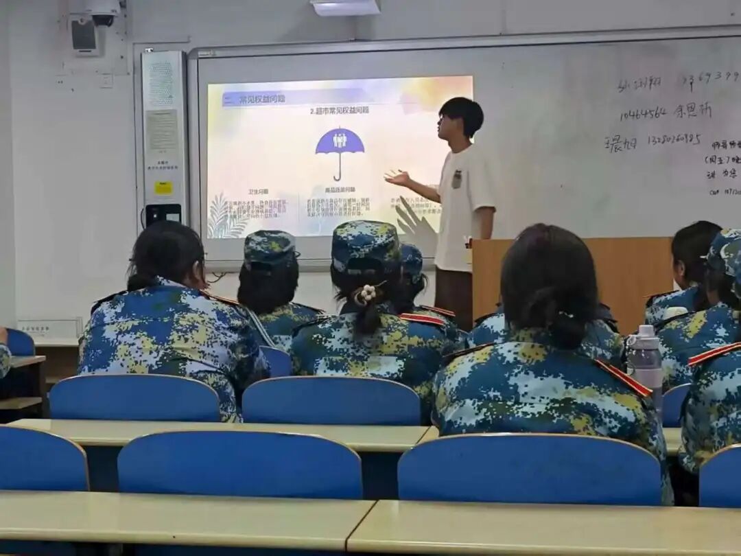 为帮助2025级新生快速了解校园权益知识,掌握正确维权途径。军训期间,校、院两级学生会骨干以“新生维权不迷路”为主题,为四千余名新生开展权益宣讲活动,为新生送上实用的维权“指南”。