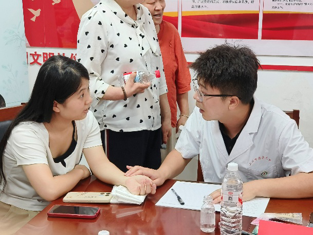 8月9日,团队走进宛城区溧河街道,在共青团宛城区委书记、溧河街道办事处主任潘秋君的协调支持下,开展“中医惠民送健康”义诊活动。活动现场,队员们充分发挥专业优势,针对颈肩腰腿痛、关节炎等常见慢性病,为居民提供针灸、推拿、艾灸等特色中医诊疗服务,并耐心解答各类健康咨询。