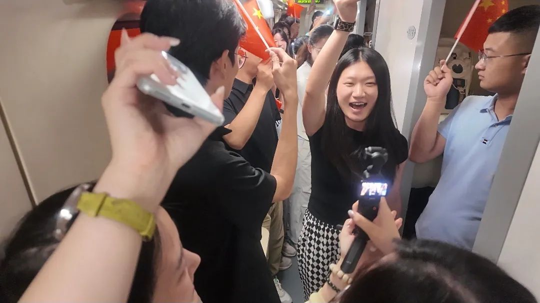 晚会最后,全体志愿者合唱《我爱你,中国》,所有人的心跳在此刻同频共振;过道里,有人用行李箱击打节拍,有人默默擦拭着眼角的泪滴,也有人随着旋律轻轻哼唱……手机灯光汇成的星海与他们瞳孔中的激情交相辉映,彰显着他们奉献自我、报效祖国的赤诚之心,以及踔厉奋发、砥砺前行的家国誓言。